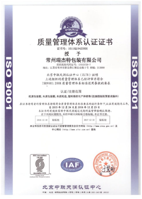 • 2016常州瑞拓包装有限公司成立于2011年3月,注册资金700万人民币,是一家专注于汽车动力总成循环绿色包装的综合服务商。公司占地面积20亩,建筑面积4300平方,现有员工60多人,本公司通过ISO9001认证,14001环境认证,获得AAA级信用认证。在整套循环包装服务领域有多年的设计经验。公司位于风景秀丽的长三角江苏省常州市新北区,公司紧邻省道,高速,机场,港口,交通便利。